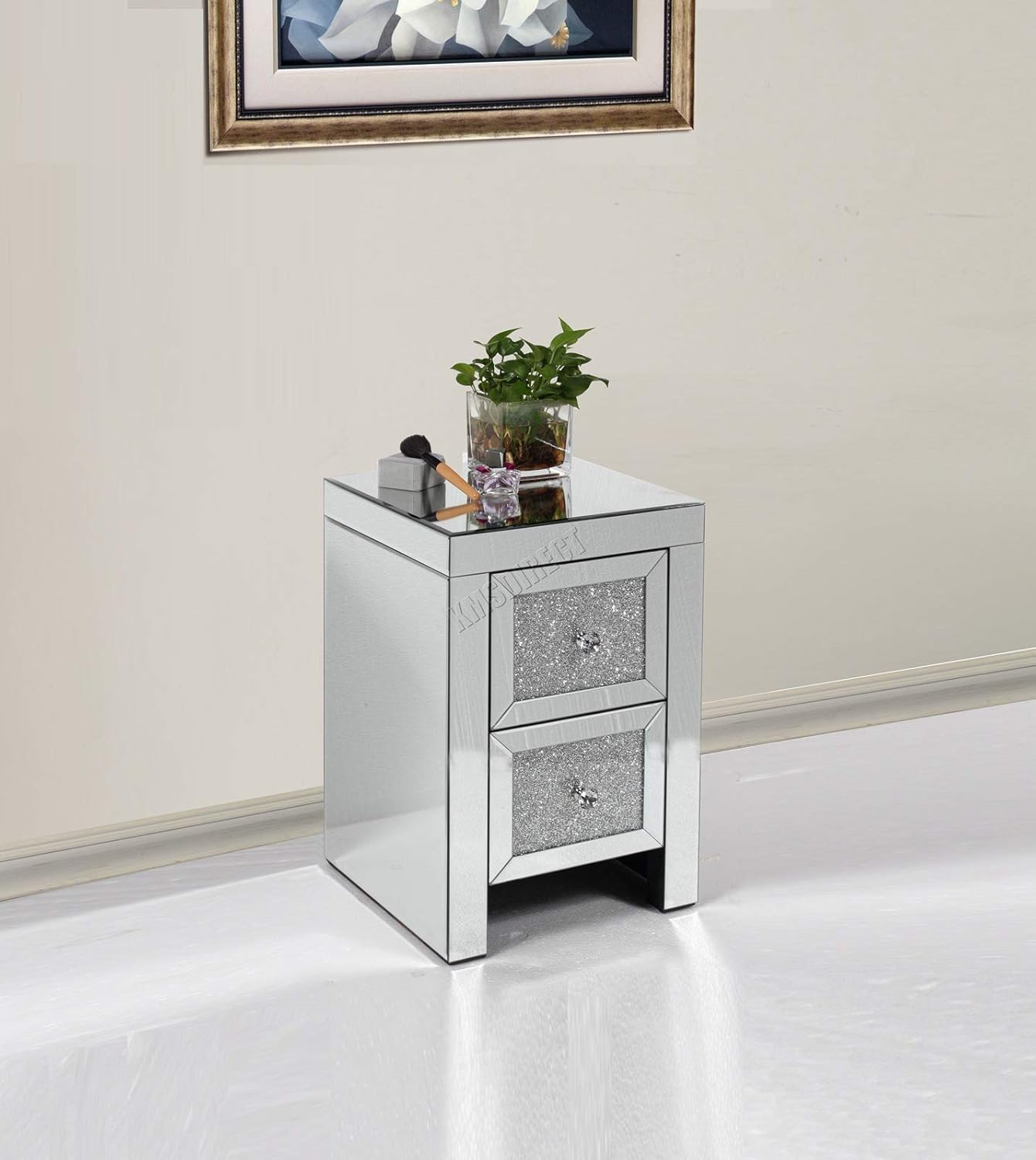Very sparkly silver mirrored 2 drawer bedside cabinet. Kostenlose lieferung für viele artikel! Crackle mirrored bedside cabinet silver sparkly broken glass. From the mocka collection this gatsby mocka diamond crush end table has a mirrored base and crushed diamond top. Gatsby crushed diamond crystal glass silver frame bevelled wall mirror 60x60cm. Gatsby crushed diamond crystal glass silver frame bevelled wall mirror 120x40cm. Hot sale crushed diamond mirrored nightstand 3 drawer chest bedside table night stand. Diamond crushed furniture (check description). This cabinet will add practicality and a high degree of decoration to your home. It's a truly exquisite piece of furniture that's striking in every way thanks to its smooth. Appliances, bathroom decorating ideas, kitchen remodeling, patio furniture, power tools, bbq grills, carpeting, lumber, concrete, lighting, ceiling fans and more at the home depot. My husband and i are working with a local kitchen designer who sells diamond cabinetry. The diamond crush collection has been designed to create optimum sparkle and glitz.